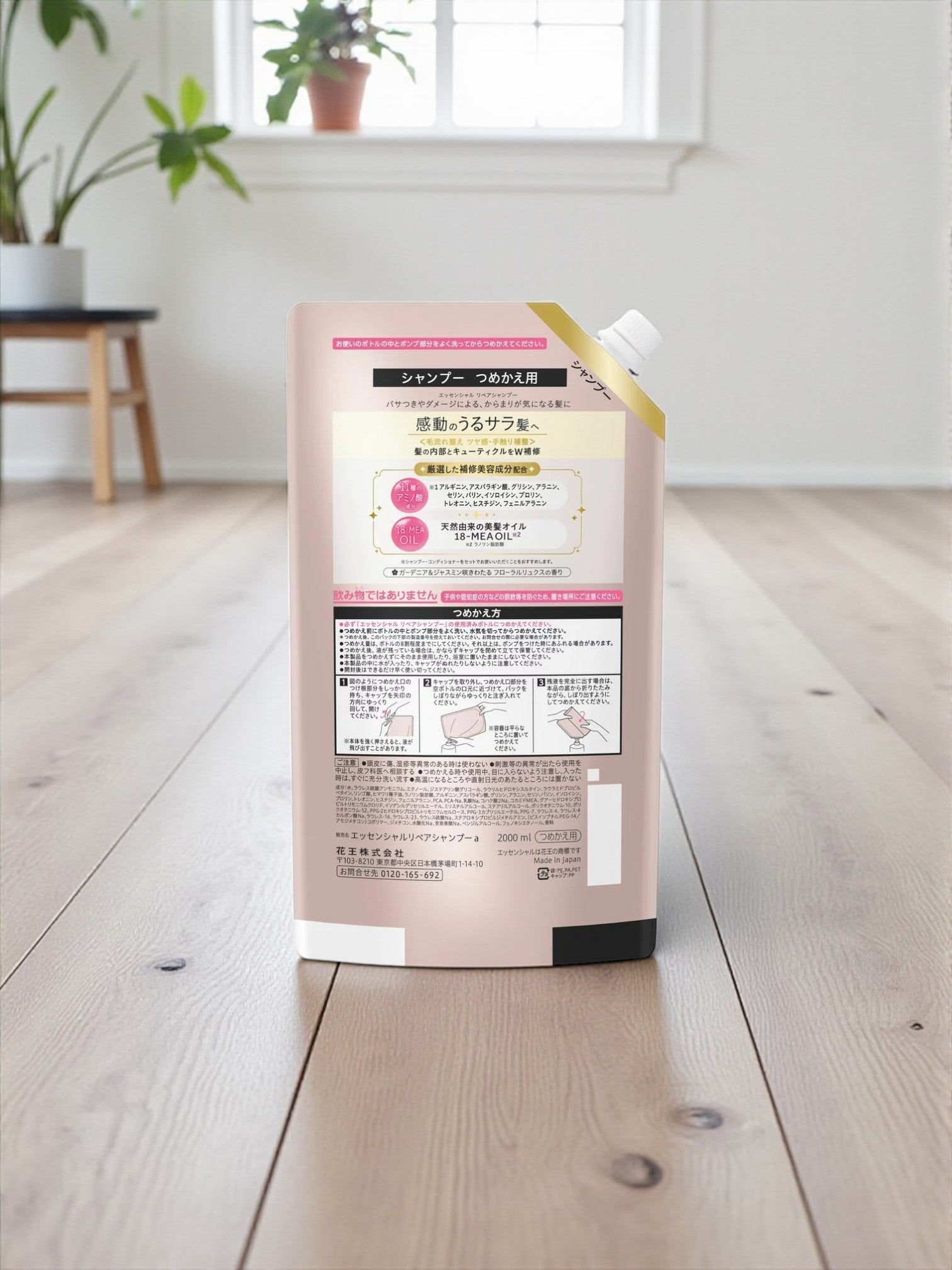 エッセンシャル ザ ビューティー リペアシャンプーは、厳選した補修美容成分を配合した大容量シャンプーです。11種のアミノ酸(アルギニン、アスパラギン酸、グリシン、アラニン、セリン、バリン、イソロイシン、プロリン、トレオニン、ヒスチジン、フェニルアラニン)と、天然由来の美髪オイル18-MEA OIL(ラノリン脂肪酸)が髪のダメージを集中補修します。ガーデニア&ジャスミンの上品なフローラルリュクスの香りが、毎日のシャンプータイムを優雅に演出。傷んだ髪を根本から整え、しなやかで輝く髪へ導きます。