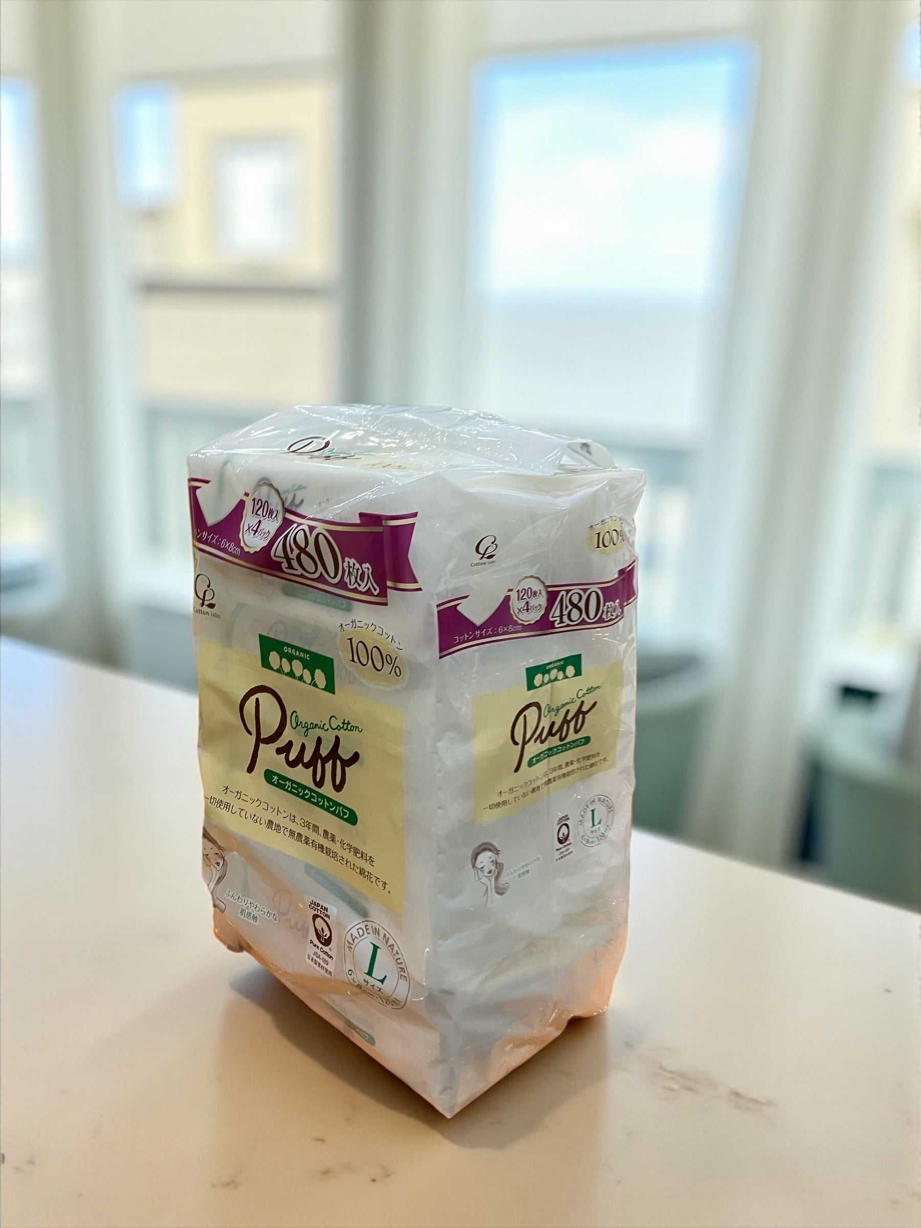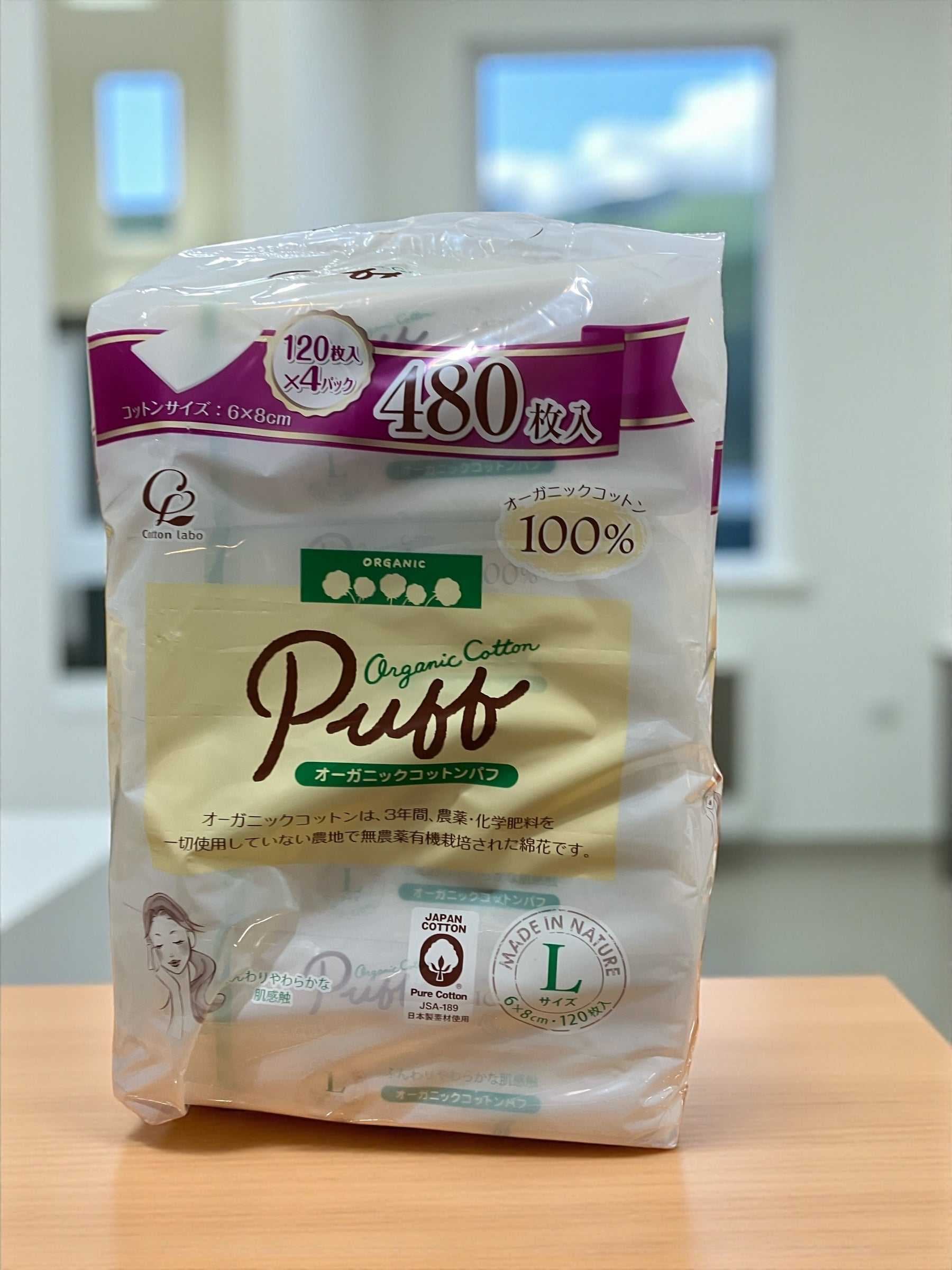 オーガニックコットン100%の無漂白パフが480枚入り。60×80mmの使いやすいサイズで、綿本来の自然な色合いを活かしました。柔らかな肌あたりで、水だけを使ったシート加工により敏感なお肌にも安心。衛生的なチャック付きパッケージで清潔に保管でき、日本製の高品質をお届けします。デイリーケアに最適なパフです。