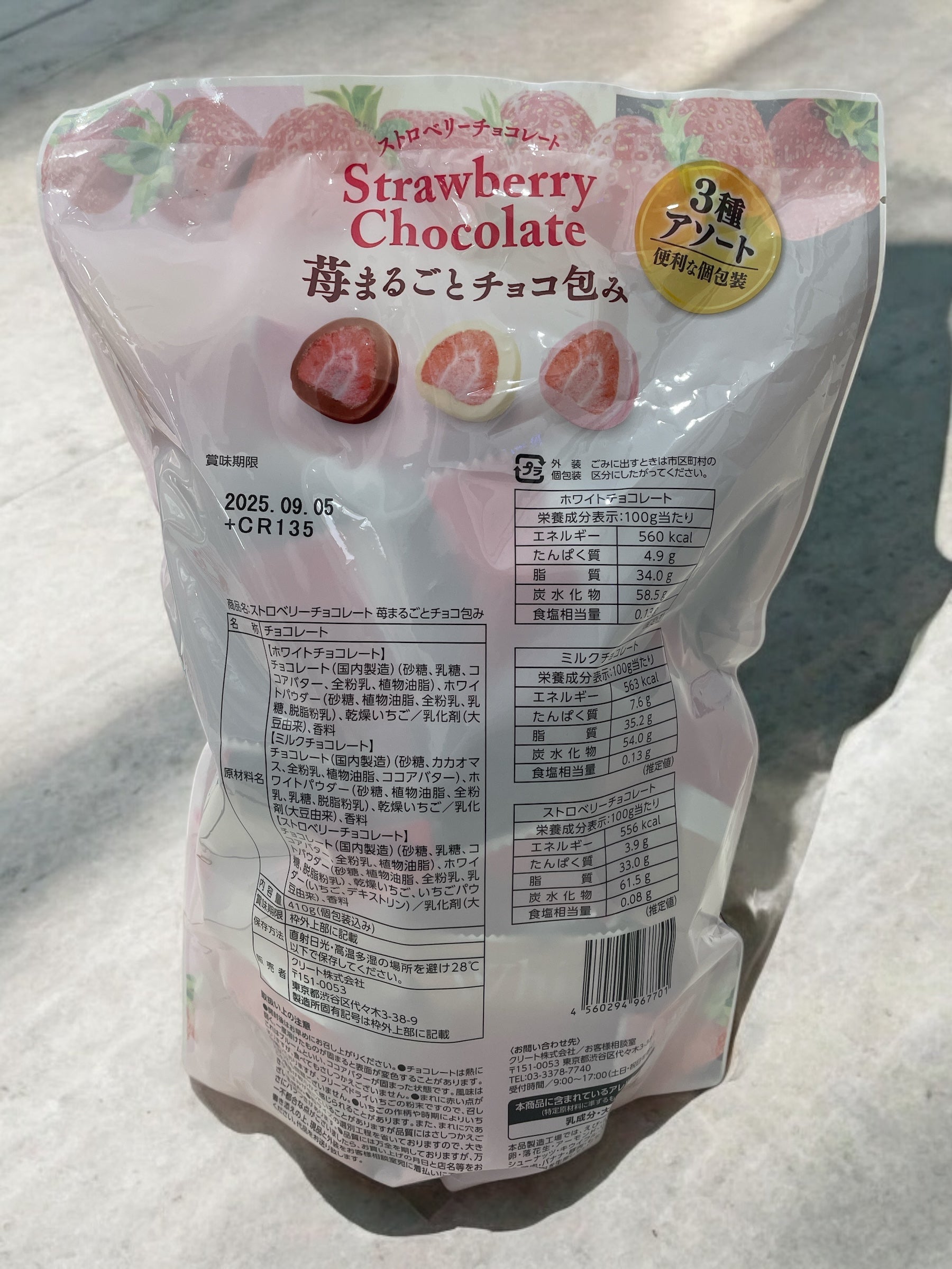 フリーズドライの苺をまるごとチョコレートで包んだ、贅沢な一品。ホワイト、ミルク、ストロベリーの3種アソートで、見た目も可愛い!個包装で、プレゼントにも最適です。410g 日本製