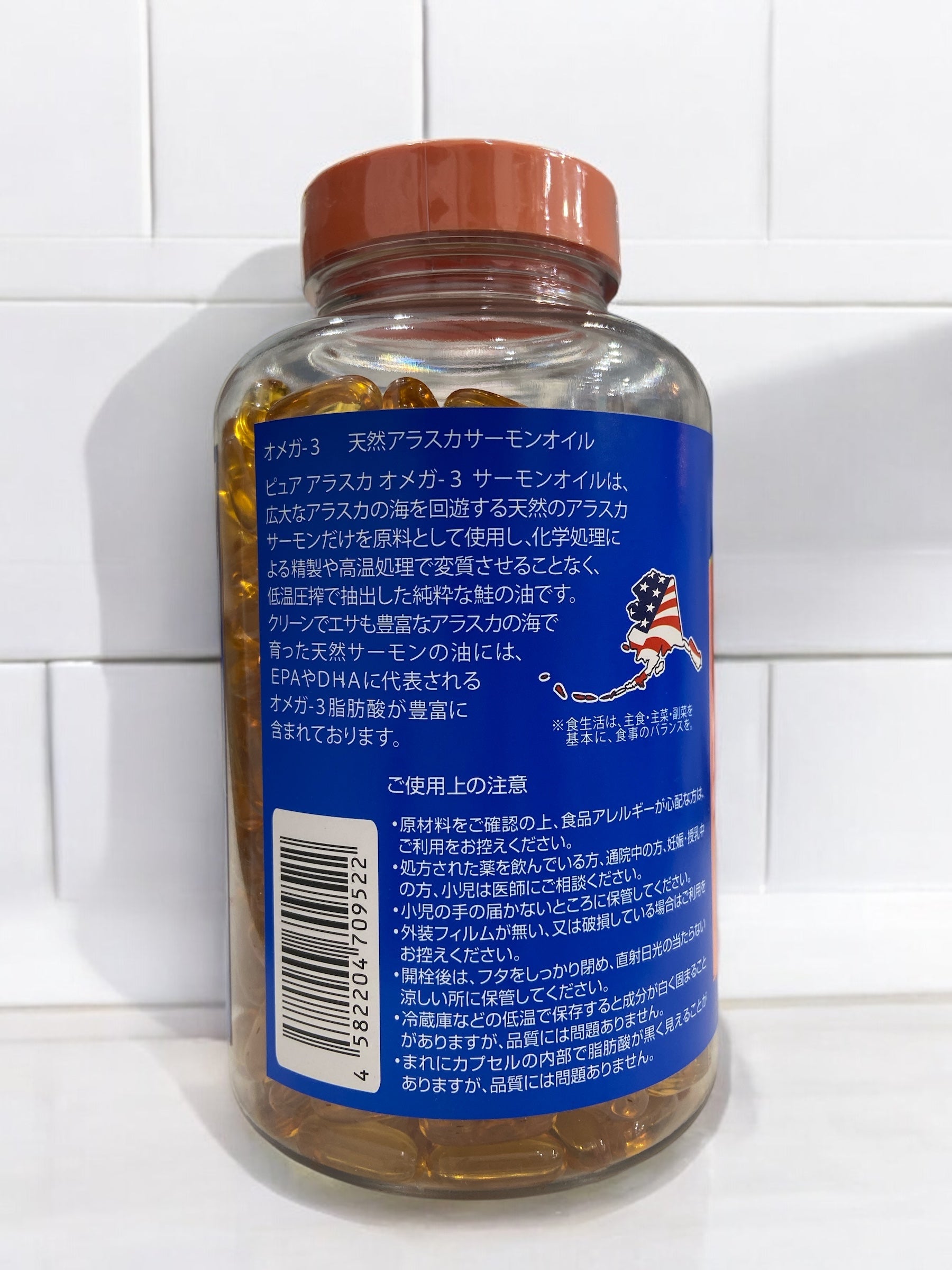 広大なアラスカの海を回遊する天然のアラスカサーモンだけを一度も冷凍せず鮮度を維持したまま使用し化学処理による精製や高温処理で変質させることのなくコールドプレス(低温圧搾)で抽出した純粋な鮭の油のサプリメントです。
