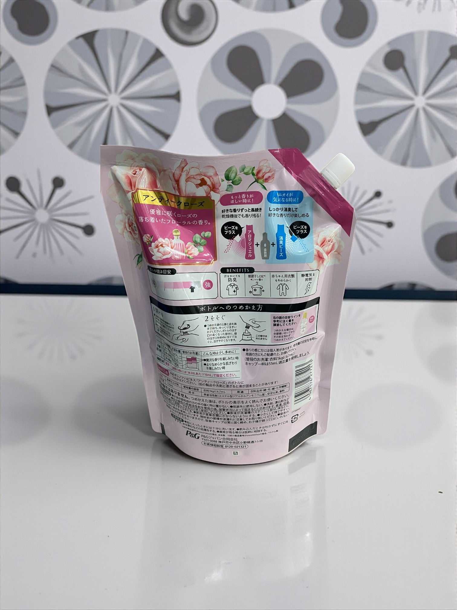 高級ホテルのタオルのようなふわふわシフォン仕上げを実現する柔軟剤です。ヨレや毛玉の発生を防ぎながら、汗をかいた衣類でも防臭効果を発揮し、部屋干しに対応。赤ちゃん用衣類にも優しく、静電気の発生を抑制するため、冬場の不快感を軽減します。アンティークローズの上品な香りが、洗濯物に心地よい香りをもたらします。720ml 詰め替え用