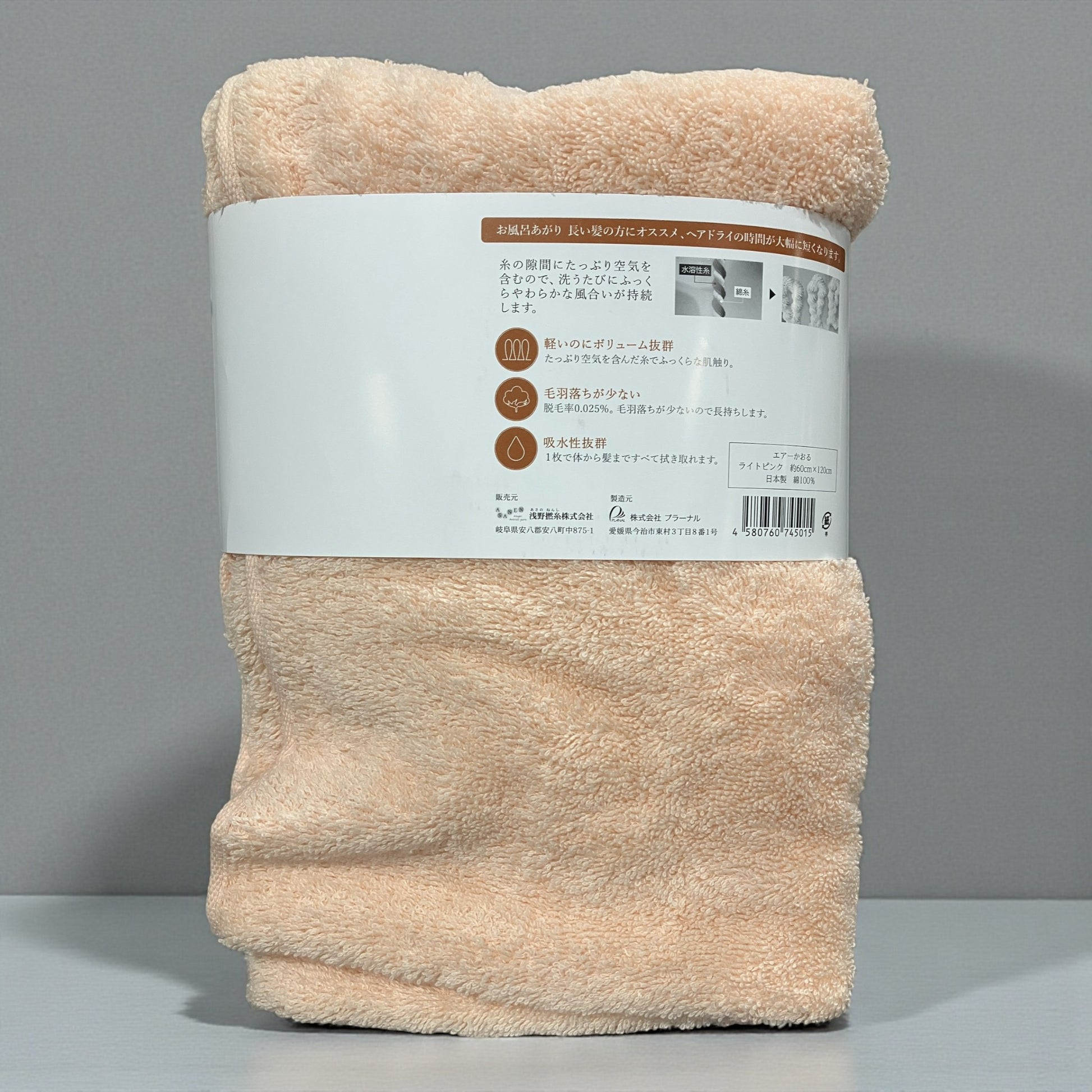 今治 エアーかおる バスタオル ダディボーイ スーパーゼロ 60x120 cm air kaol カラー ライトピンク