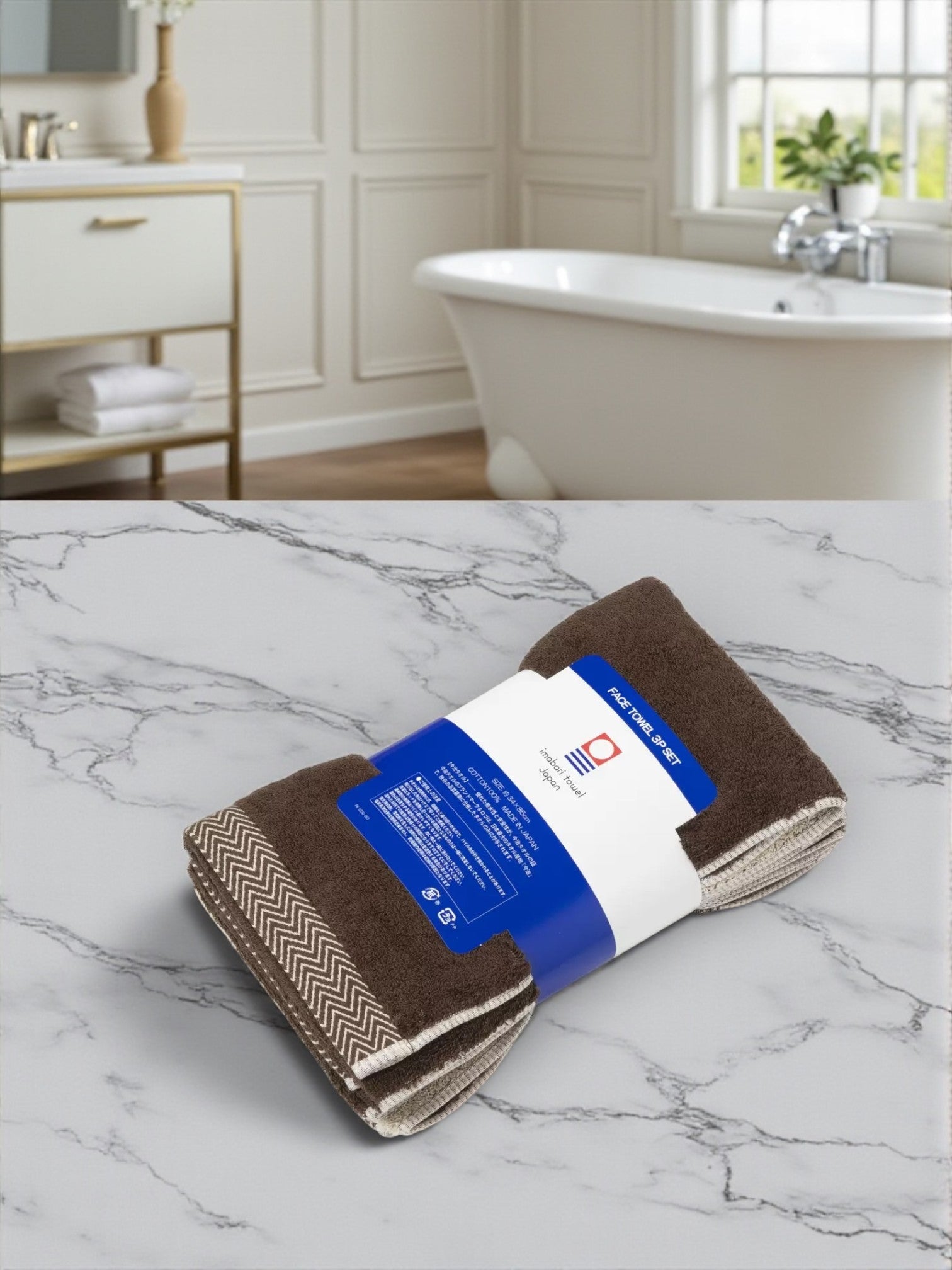 今治 フェイスタオル 3枚組 34 x 85cm カラー ブラウン