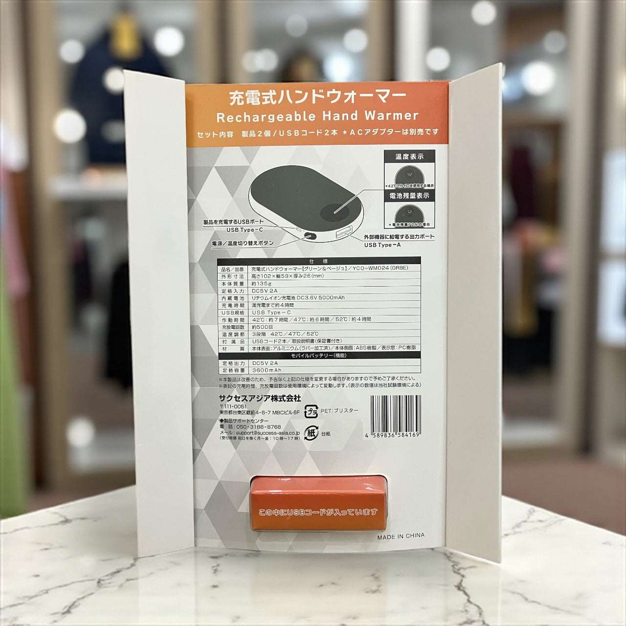 充電式ハンドウォーマー バッテリーカイロ 2個セット ベージュ&グリーン