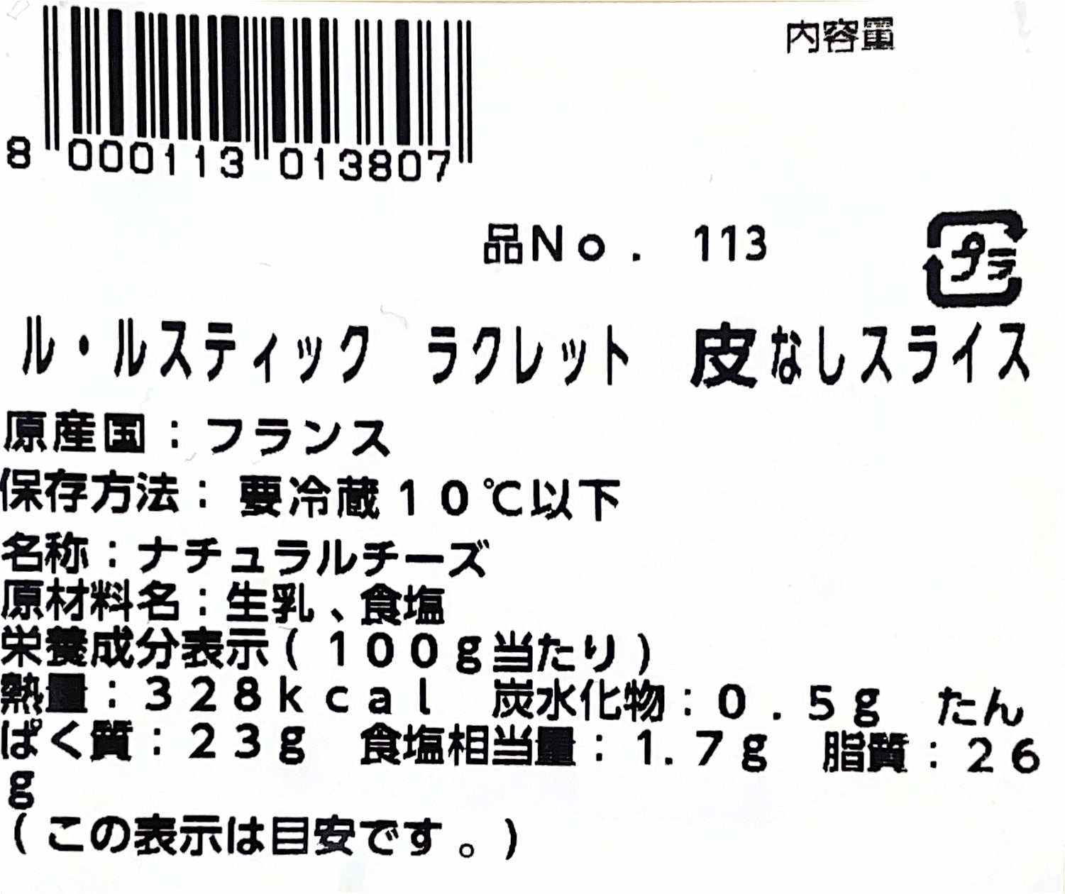 【冷蔵商品 チーズ】ル・ルスティック ラクレット チーズ 皮なし スライス 350g  LE RUSTIQUE Raclette フランス産