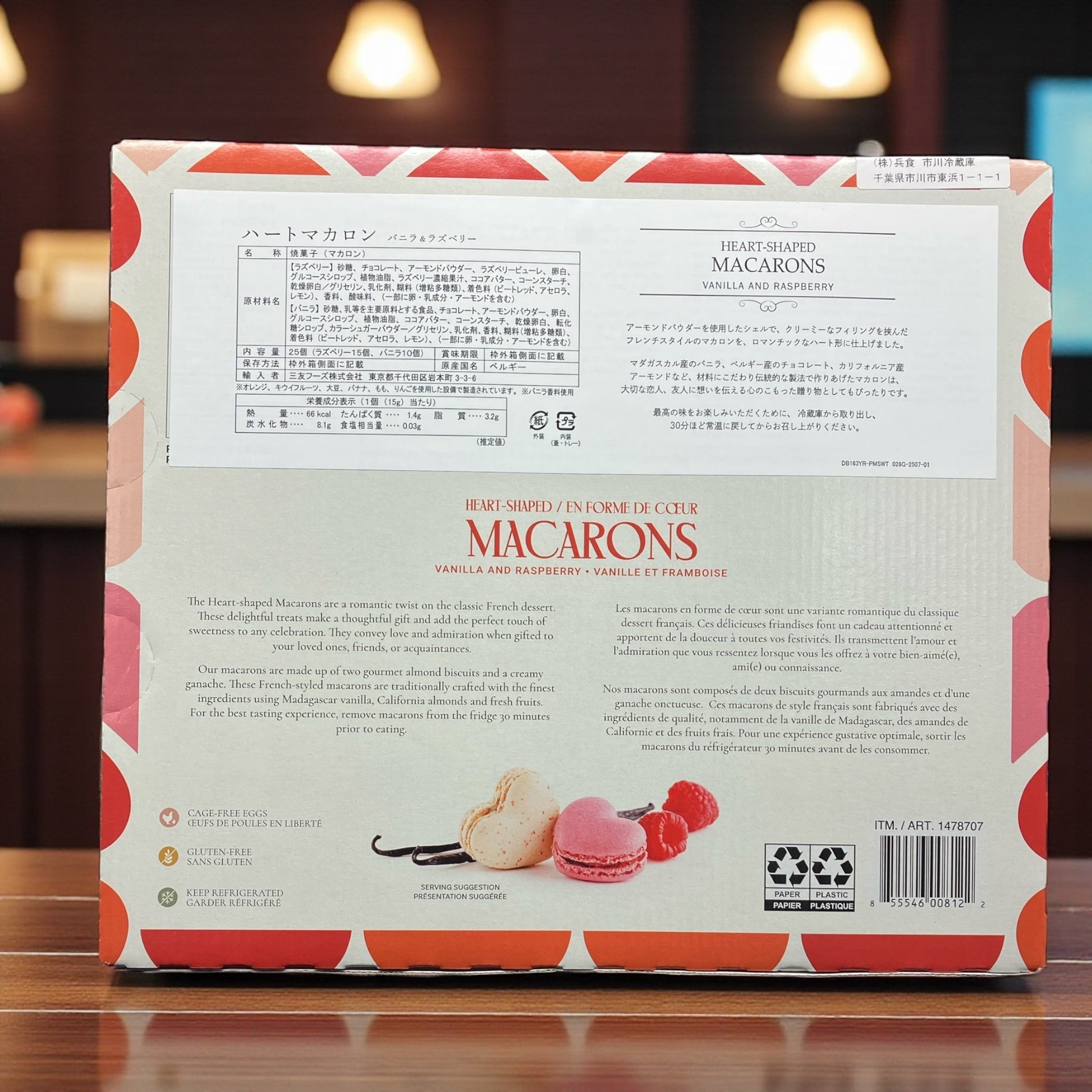 ベルギー発祥の高級マカロンブランド「LE CHIC」のハートマカロンです。バニラとラズベリーの2つの上品な味わいが、合計25個たっぷり詰まっています。ひとつひとつ約4㎝のかわいらしいハート型で、見た目の美しさも魅力。繊細で香り高い本格的なマカロンの食感と風味をお楽しみください。特別なギフトやご褒美スイーツにぴったりです。冷蔵保管でお届けします。