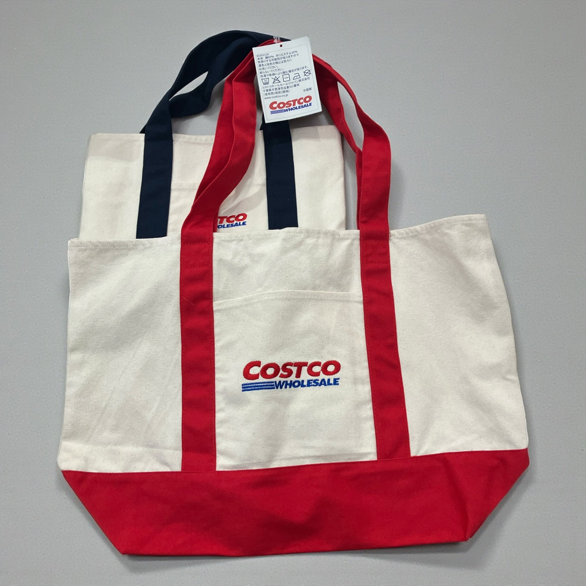 コストコオリジナルデザインのトートバッグが期間限定販売です(^o^)丿コストコロゴ刺繍のポケットがございます♪