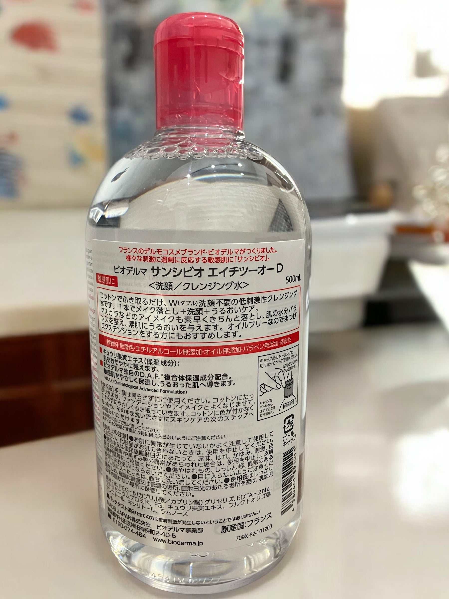 メイク落としと洗顔が1本で完了!ビオデルマのクレンジングウォーターは、敏感肌にも優しい♪ コットンで拭き取るだけで、メイク汚れをしっかりオフ。500mlの大容量で、たっぷり使えてコスパも◎。