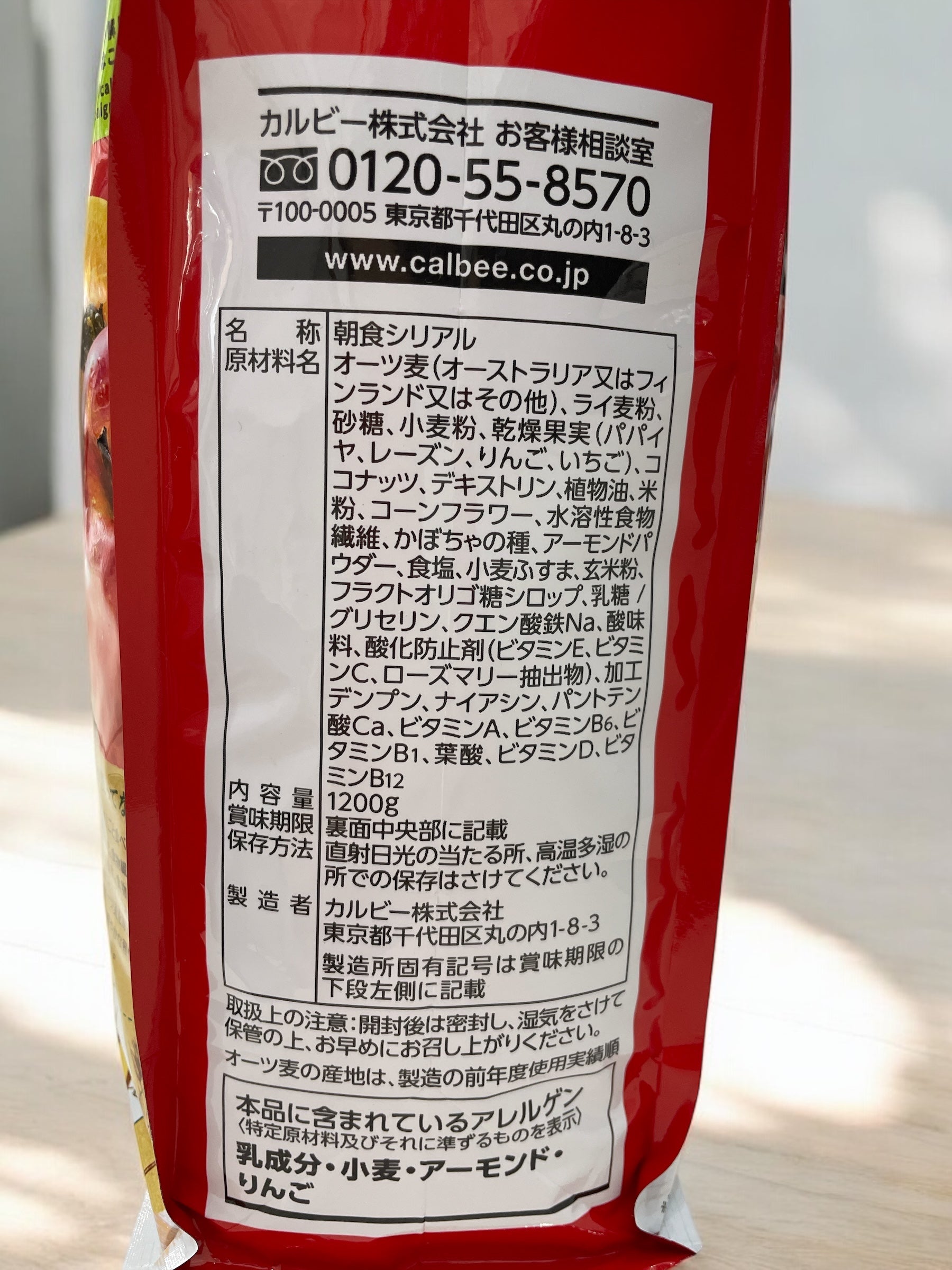 大容量の1.2kgパッケージです。ドライのいちご、りんご、パパイヤ、レーズンの甘酸っぱい風味と、各種穀物にカボチャの種がザクザクおいしい定番のシリアルです。