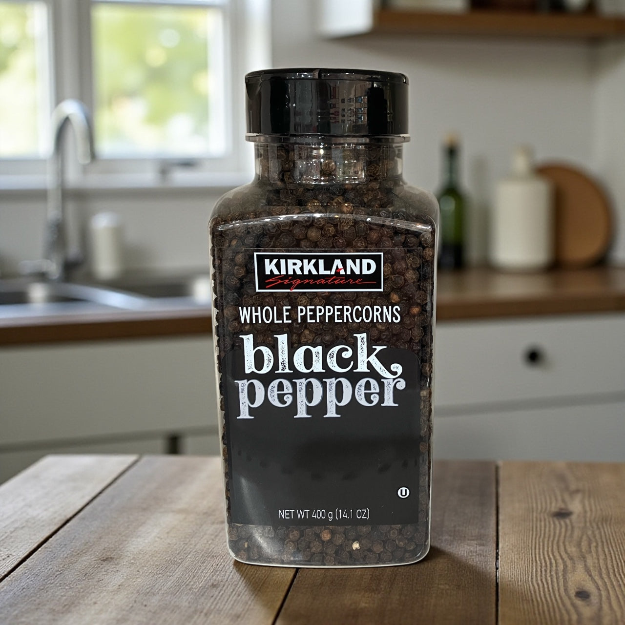 カークランドシグネチャーのホールブラックペッパーは、ベトナム産の厳選された大粒を手作業で丁寧に収穫しました。400gの内容量で、毎日の料理に欠かせないスパイスです。ピリ辛でありながらフルーティーな香りが特徴で、肉料理から野菜炒め、スープまで幅広い料理の味わいを引き立てます。新鮮で豊かな風味が、あなたの食卓をワンランク上へ。