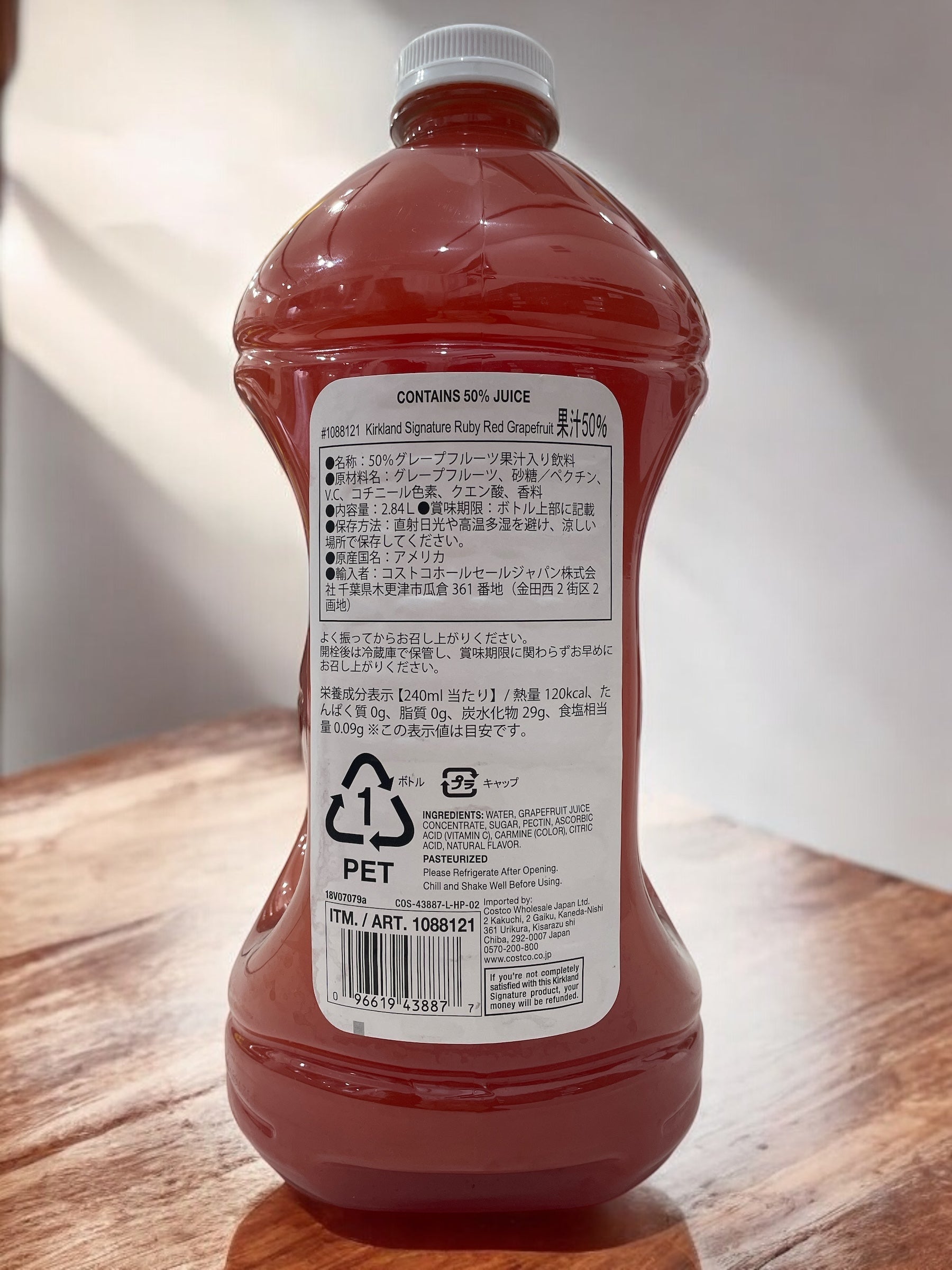 KS ルビーレッドグレープフルーツ ジュース 2.84L /カークランドシグネチャー