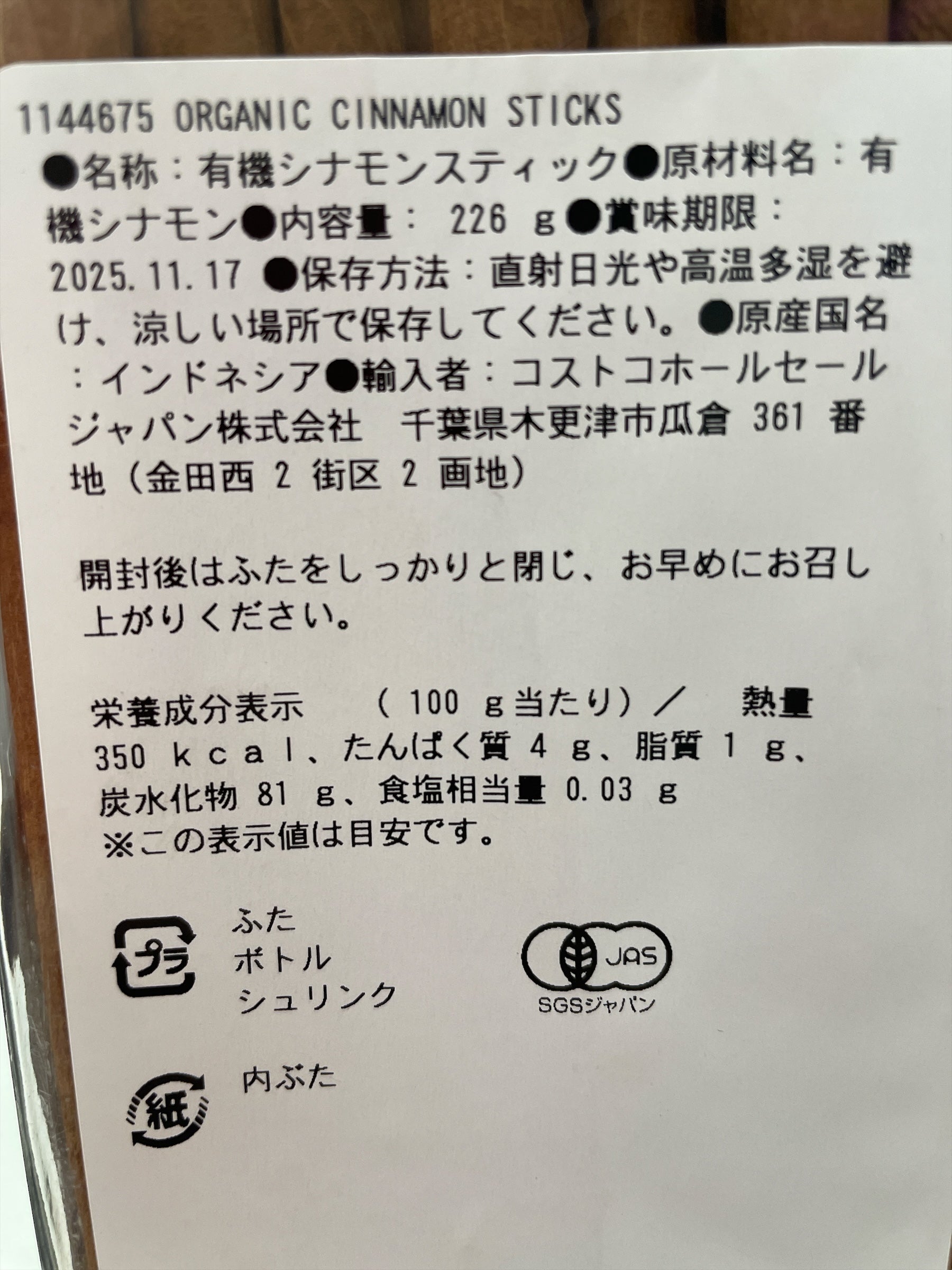 インドネシア産の厳選されたオーガニックシナモンを使いやすいスティック状に仕上げたものです。