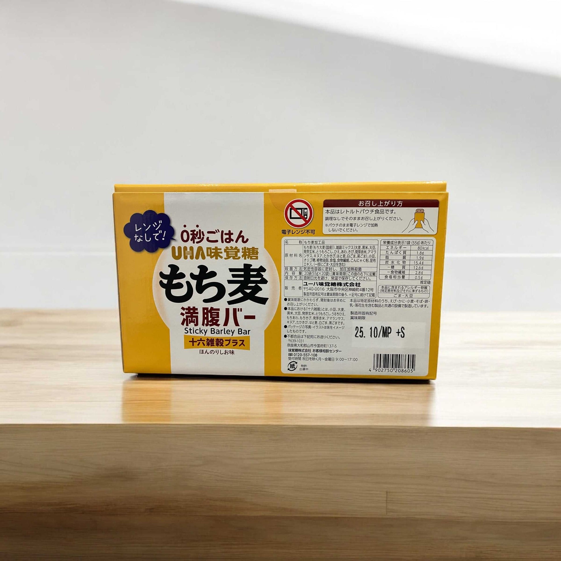 もち麦をぎゅっと固めた、もち麦満足バー。もち麦と十六雑穀で作ったヘルシーな商品です。食物繊維たっぷりで、低カロリーなのに腹持ち抜群。個包装だから持ち運びにも便利です。ほんのり塩味で飽きない美味しさ。