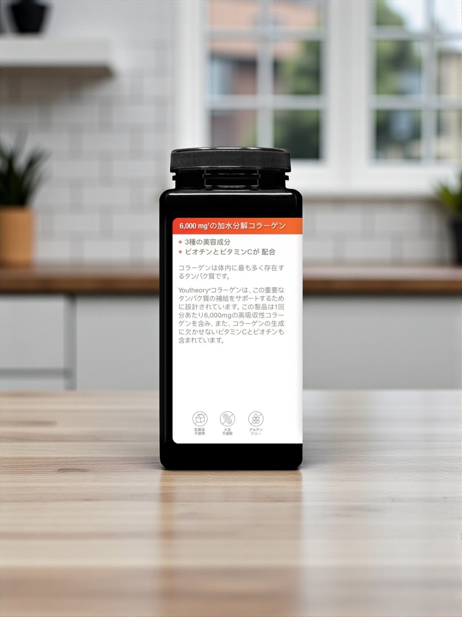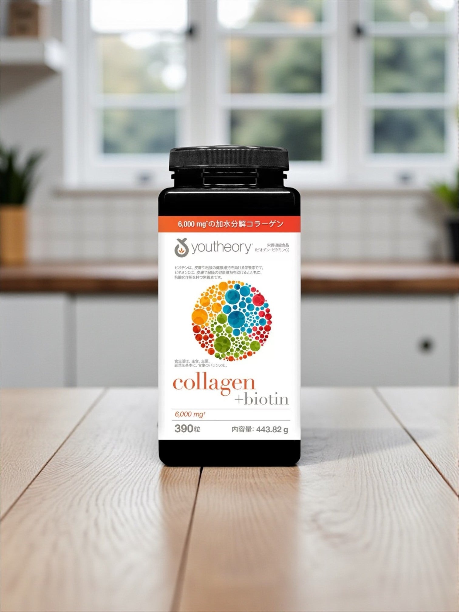 Youtheory Collagen Biotinは、カリフォルニア発のナチュラルライフスタイルブランドが提供する高品質なコラーゲンサプリメントです。1日6粒の摂取で、6,000mgの高吸収性コラーゲンペプチド(加水分解コラーゲン)とビオチン500μgを補給できます。さらに皮膚や粘膜の健康維持を助け、抗酸化作用を持つビタミンCも配合。すべての製品はGMP認定工場で製造され、純粋性と産地の透明性が保証されています。シンプルで本物の美と健康をサポートします。